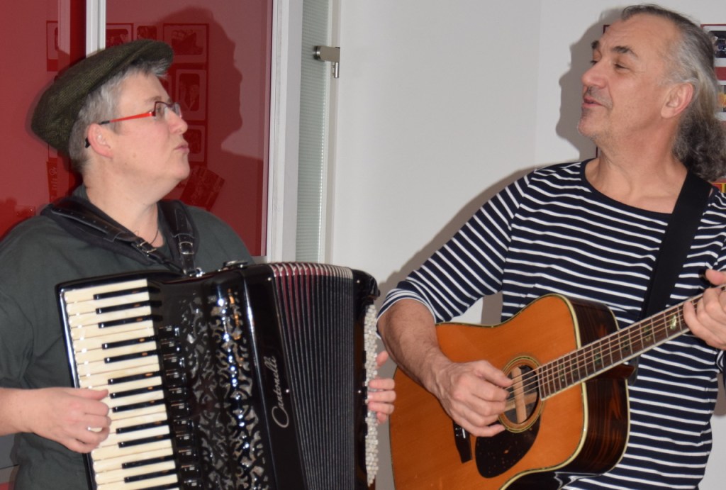 Konzert mit Stefan (Gitarre, Gesang) und Birgit (Akkordeon, Dudelsack, Gesang).