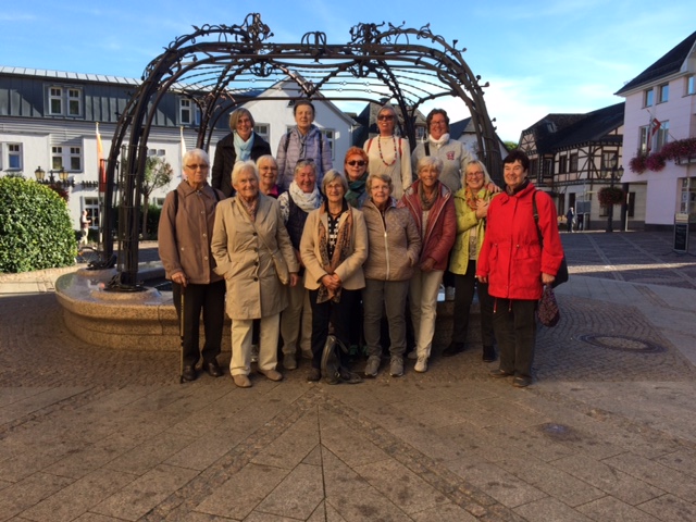 Das ganze Jahr über treffen sich die Mitglieder der Handarbeitsgruppe regelmäßig im Gemeinschaftsraum der evangelischen Kirche. Rund 20 Teilnehmer kann Gruppenleiterin Karin Breuer dort meistens begrüßen zum gemeinsamen Tun. Vor einigen Tagen allerdings stand eine Bustour auf dem Programm. Das Ziel war Ahrweiler, wo die Heimbacherinnen einen Bummel durchs Städtchen unternahmen. Es gab viel zu sehen: Kelten, Germanen, Römer, Grafen, Erzbischöfe und Franzosen haben sich in Ahrweiler niedergelassen. Die mittelalterliche Stadtmauer mit Wallgraben, Toren und Türmen aus dem 13. Jahrhundert ist vollständig erhalten. Malerisch verträumte Fachwerkhäuser können stressfrei in der autofreien Altstadt besichtigt werden. Unser Bild zeigt die Damen im Zentrum der Stadt.