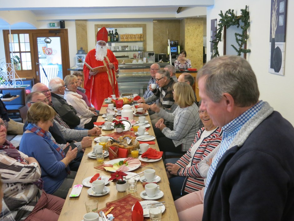 Nicht nur die Kleinen lieben den Nikolaus, auch für ältere Menschen ist es immer wieder eine Freude, den heiligen Mann in seinem roten Gewand zu sehen. Das hat sich auch der Leiter der Fahrradgruppe der „Jungen Alten“, Hans-Peter Klein, gedacht: Er lud Nikolaus zu einem Frühstück ein, und siehe da: Für jeden der eifrigen Sportler hatte er ein paar gute Worte. Da fiel es den Radfahrern leichter, die lange Winterpause zu überbrücken. Fotos: Walter Schöller