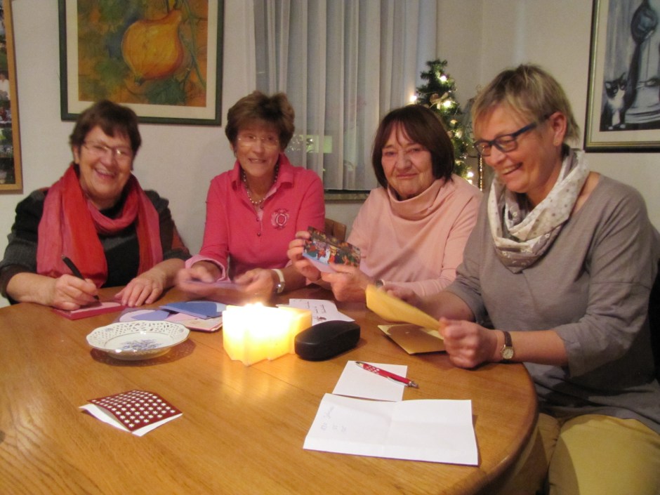 Unser Foto zeigt (von links) Hilde Kleinschmidt, Karin Breuer, Margret Bidaoui und Hilde Amrein beim Verpacken der Gutscheine. ush