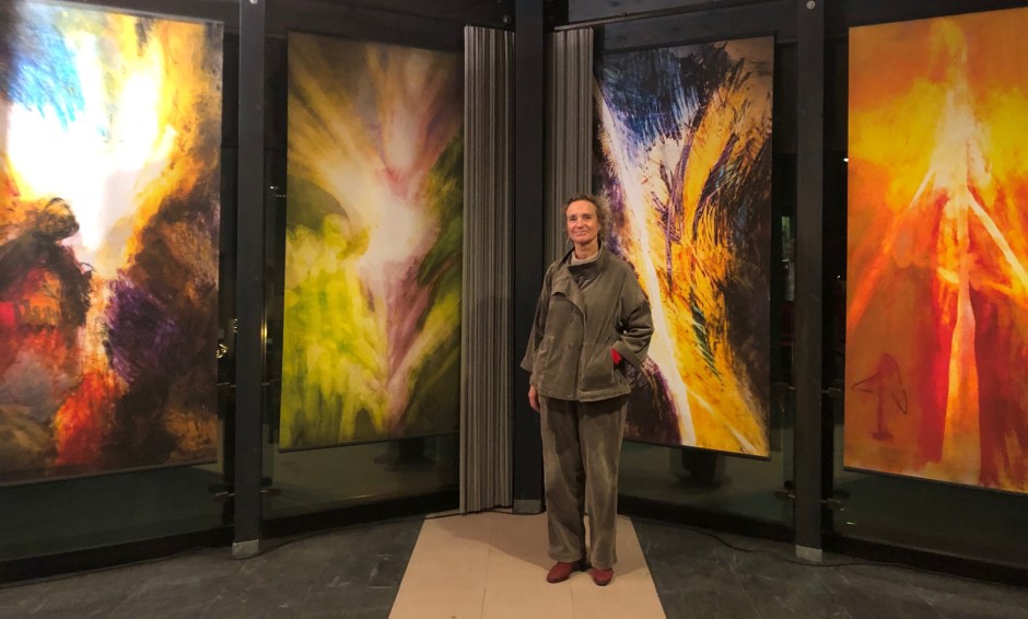 Es ist das Licht, das alle Blicke auf sich zieht. Das Licht, das Hoffnung bringt: Zwei Meter hoch, opulent und kraftvoll sind die Darstellungen der vier Erzengel Uriel, Michael, Gabriel und Raphael. Ihre hellen Strahlen vertreiben das Dunkel und machen Mut. „Das Licht bricht durch die Bilder hindurch in den Raum hinein“, sagt die Künstlerin Caroline Lauscher (unser Foto), die die Ausstellung in Zusammenarbeit mit den „Jungen Alten Heimbach“ ins Leben gerufen hat. „Die Erzengel transportieren eindringlich ihre Botschaft: Lass Dein Licht leuchten und werde selbst zum Lichtträger. Wir alle stehen im Licht dieses göttlichen Geheimnisses. Ob wir uns dessen bewusst sind oder nicht.“