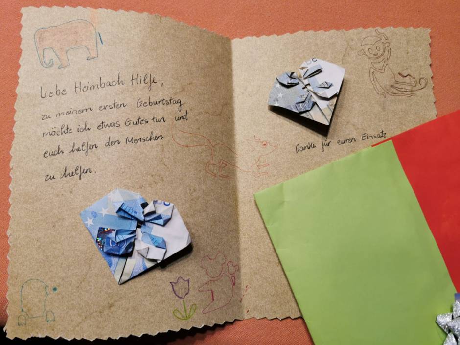 Eine große Freude erlebte die Leiterin der „Heimbachhilfe“, Hilde Kleinschmidt, als sie den Brief des kleinen Thorge öffnete. Zu seinem einjährigen Geburtstag hat er seine Eltern dazu inspiriert, der Heimbachhilfe eine Spende zu schicken und „damit etwas Gutes zu tun und euch zu helfen, den Menschen zu helfen.“ In einem weiteren Satz ließ Thorge über seine Eltern versichern: „Gut, dass es euch gibt.“
