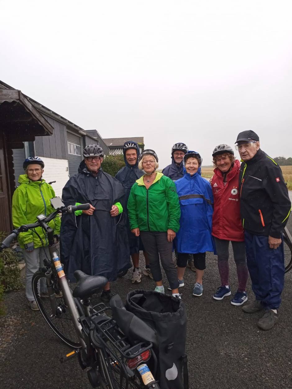 Trotz düsterer Wolken und einiger Regenschauer machte sich Hans-Peter Klein mit seiner Fahrradgruppe auf den Weg von Zülpich nach Lechenich. In Niederelvenich legten die Radler eine kurze Regenpause ein, und während des Mittagessens in Lechenich sorgten sie dafür, dass die Fahrradtaschen wieder trockneten. Trotz der nassen Umstände blieb die gute Laune nicht auf der Strecke. „Es wurde viel gelacht“, versichert Hans-Peter. Unser Foto ist der Beweis.