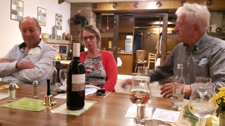 Es war gesellig, wie immer: Die Teilnehmer des „Stammtisches“ trafen sich im „Eifeler Hof“ bei Bier, Wein, leckeren Gerichten und guten Gesprächen. Zur Überraschung aller war diesmal auch eine Frau dabei: Reinhilde Cremer bereicherte die Runde und bedankte sich für die jahrelange Treue, die der Stammtisch ihrem „Hasenfelder Hof“ entgegen gebracht hat, bevor sie die Gaststätte schloss. Foto: Wolfgang Virnich