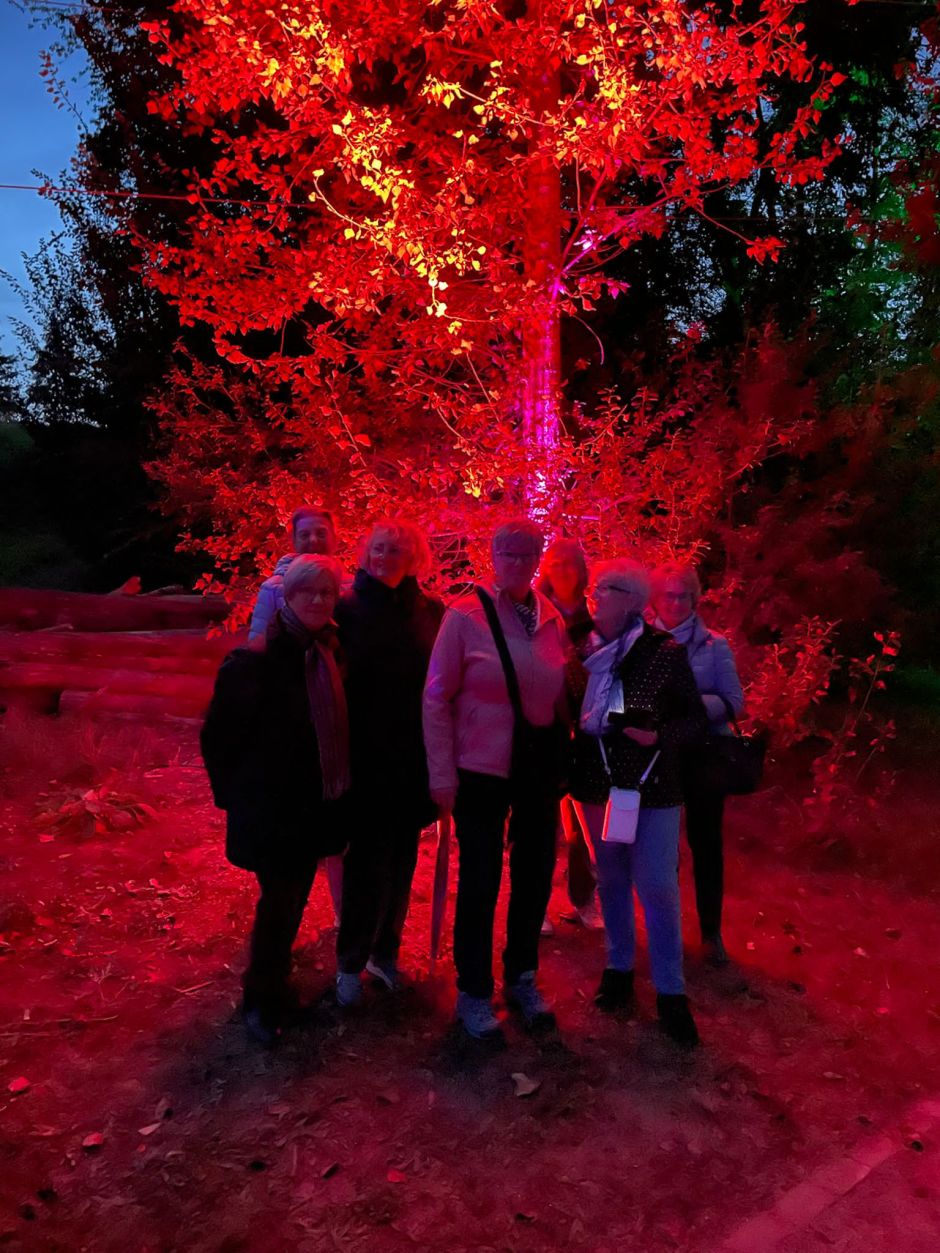 Die Walking-Gruppe um Brigitte Gfeller hatte sich einen besonderen Spazierweg ausgesucht: Sie wanderte durch den malerisch illuminierten Seepark in Zülpich und ließ sich von den „Leuchtenden Gärten“ begeistern. Dieser Marsch war nach einhelliger Meinung ein Spaziergang für Körper und Seele. Unsere Fotos zeigen die sportlichen Damen im Lichtermeer und zu Beginn des Ausflugs.