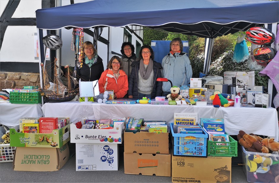Zum ersten Mal waren einige Mitarbeiterinnen der „Heimbachhilfe“ beim Hausener Flohmarkt aktiv. An ihrem attraktiven Stand boten sie Kleidung, Spielzeug und andere Dinge des täglichen Gebrauchs an. Am Ende des Tages gab es strahlende Gesichter: „Unsere Aktion war ein Erfolg“, sagt Gruppenleiterin Inge Wergen. „Wir konnten viel Aufmerksamkeit erzielen und freuen uns, dass sich die Mühe gelohnt hat. Ich bedanke mich bei allen, die mitgeholfen haben.“