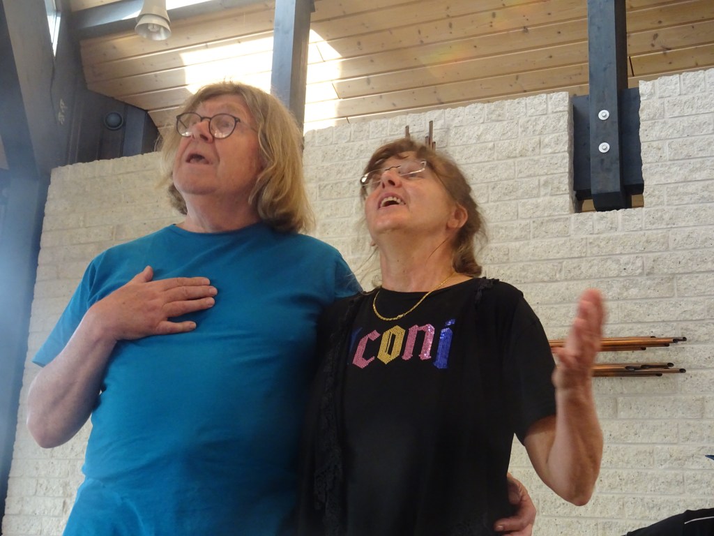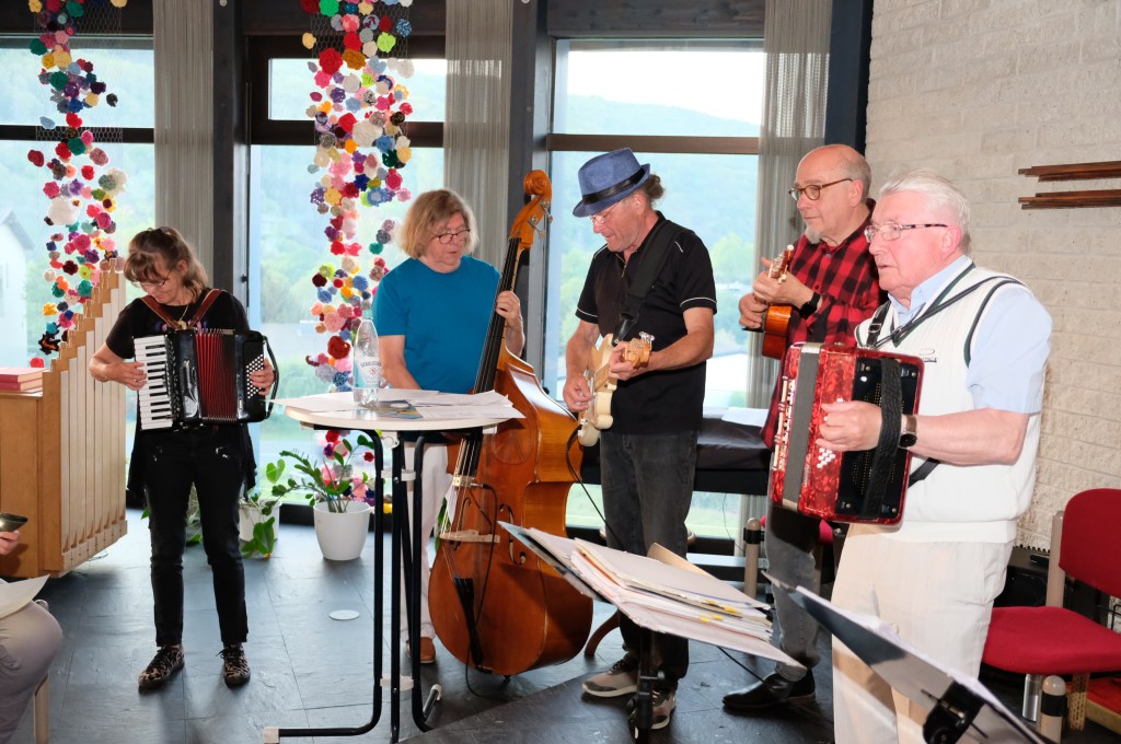 Zum Schluss lud „Cantalyra“ den Musiker der „Jungen Alten“, Frank Ledig, ein, auf die Bühne zu kommen. Er spielte das Eifellied “Fahr noch einmal in die Eifel“ auf dem Akkordeon, das Dagmar Ledig getextet hat, und alle stimmten ein.
