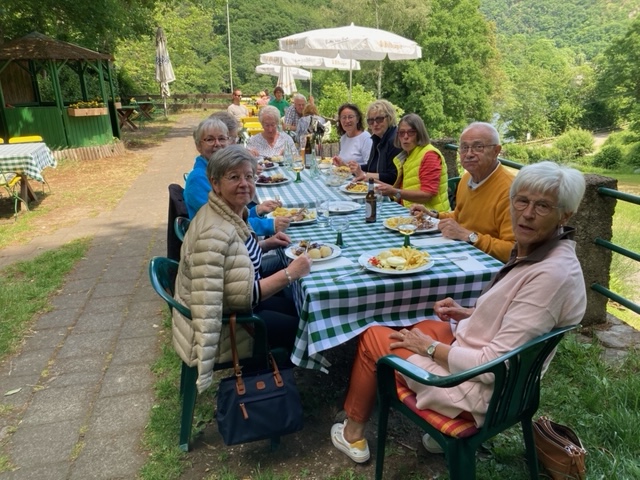 Kochen macht Freude, aber ebenso schön ist es manchmal, sich bekochen zu lassen. Das ist die einhellige Meinung der Kochgruppe unter Leitung von Inge Wergen und Ursula Küpper. Die Mitglieder verwandelten ihren Koch- in einen Wandertag und marschierten über den Dschungelpfad zum Restaurant Ühlein am Stausee. Mit jedem Schritt wurden Appetit und Vorfreude größer. Das anschließende Essen auf der Terrasse war für alle ein Vergnügen, wie unser Foto beweist.