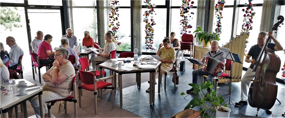 Der „Heimatnachmittag“ wurde umrahmt von Frank Ledig am Akkordeon und Mohamed Bidaoui am Bass, die unter anderem das Eifellied von Dagmar Ledig vortrugen und die Zuhörer zum Mitsingen animierten.