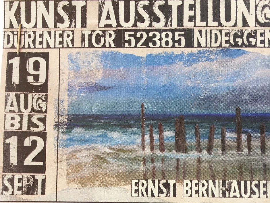 Fast zeitgleich, vom 19. August bis 12. September, präsentiert sich Ernst Bernhauser im Dürener Tor von Nideggen. „Derzeit überlege ich, was der Schwerpunkt meiner dortigen Ausstellung sein wird“, sagt er. „Ich habe bisher eine Vorauswahl getroffen.“