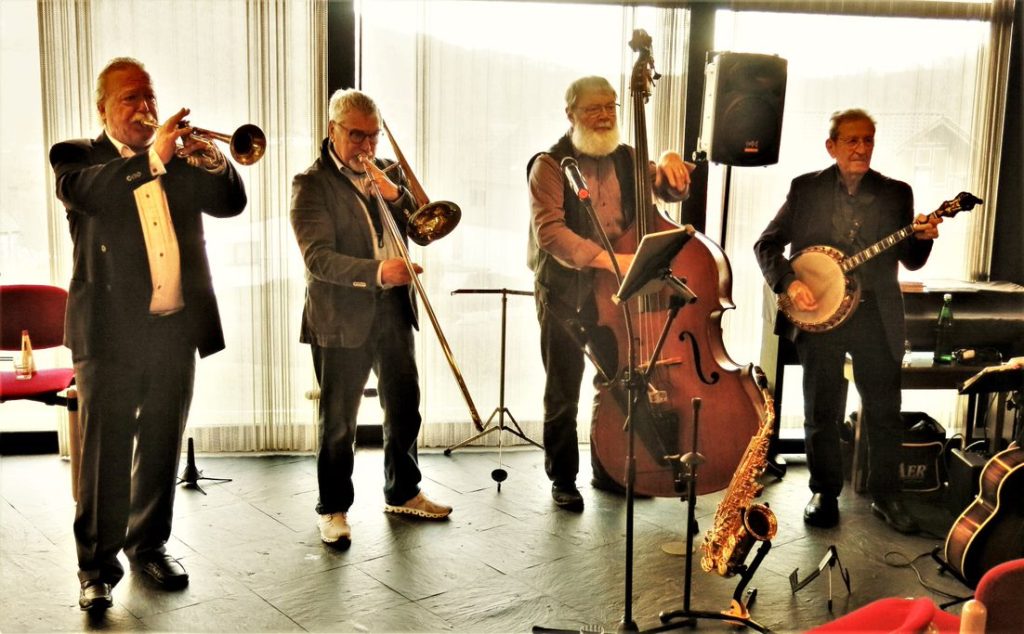 Zum Ausklang des Empfangs gab es Süppchen, Kuchen und viel Musik von „Jazz4u“, die so begeistert waren von ihrem Heimbacher Publikum, dass sie bis in den frühen Nachmittag spielten.                        ush