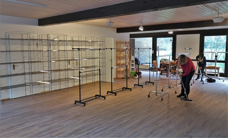 Die neuen Räume der „Heimbachhilfe“ an der Hengebachstraße 108 nehmen Gestalt an. Mit tatkräftiger Unterstützung des Bauhofs geht in diesen Tagen der Umzug der Einrichtung vonstatten. Die Mitarbeiterinnen haben alle Hände voll zu tun, die neue Kleiderstube wohnlich und ansehnlich zu machen. Noch fehlt es an einigem, aber jeder Tag bringt einen Schritt weiter.