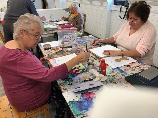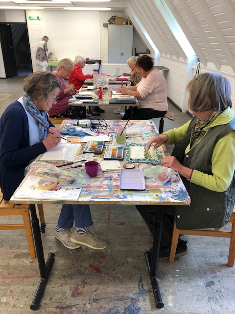 Die Bilder von Ulrike Schwieren-Höger zeigen Impressionen von der Arbeit der Malgruppe.           ush