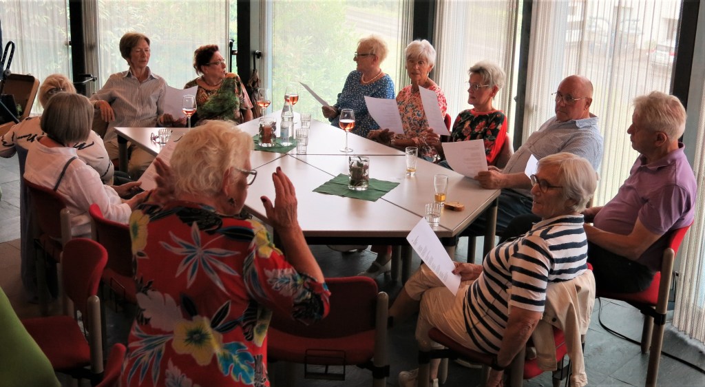 Das Wetter meinte es diesmal nicht gut. Beim Sommerfest entschieden sich die „Jungen Alten“, im Saal der EvA am Schönblick zu feiern und nicht, wie geplant, Open Air. Erst abends gesellten sich einige nach draußen, um die letzten Sonnenstrahlen zu genießen.