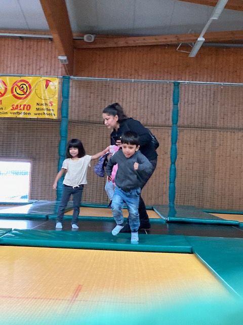 Im Spieleparadies zogen viele zur Riesenrutsche, zum Golfspiel oder auf den Wasserspielplatz im Outdoorbereich, andere vergnügten sich am Klettergerüst oder an den Spielgeräten und am Trampolin in den Sälen. Jede Familie hatte ein Picknick dabei. Und zum Schluss gab es ein leckeres Eis für alle Kinder.