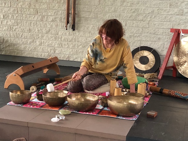 Marianne Bresgen hat den Besuchern der Meditationsabende von Caroline Lauscher in der EvA ein besonderes Erlebnis geschenkt. Sie bespielte Klangschalen, Trommeln, ließ die archaischen Klänge des Didgeridoo ebenso erklingen wie die des Monochords und des Fünf-Elemente-Koshi. Fast eine Stunde lang bediente sie die Instrumente, ging mit ihnen durch den Raum, näherte sich den Zuhörern, um sie enger mit sich selbst und dem Klang zu verbinden.