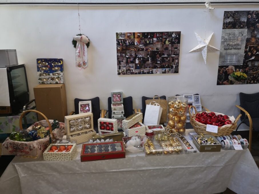 Auf unserem oberen Foto ist das Freitagsteam der Heimbachhilfe um Gruppenleiterin Inge Wergen (rechts) zu sehen. Die unteren Fotos von Walter Schöller zeigen die Vielfalt der angebotenen Weihnachtsdeko.