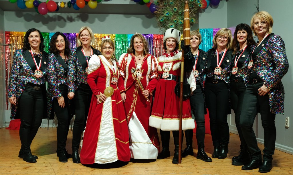 Claudia Lüth, vorne links, mit Dreigestirn und „Silvergirls“.