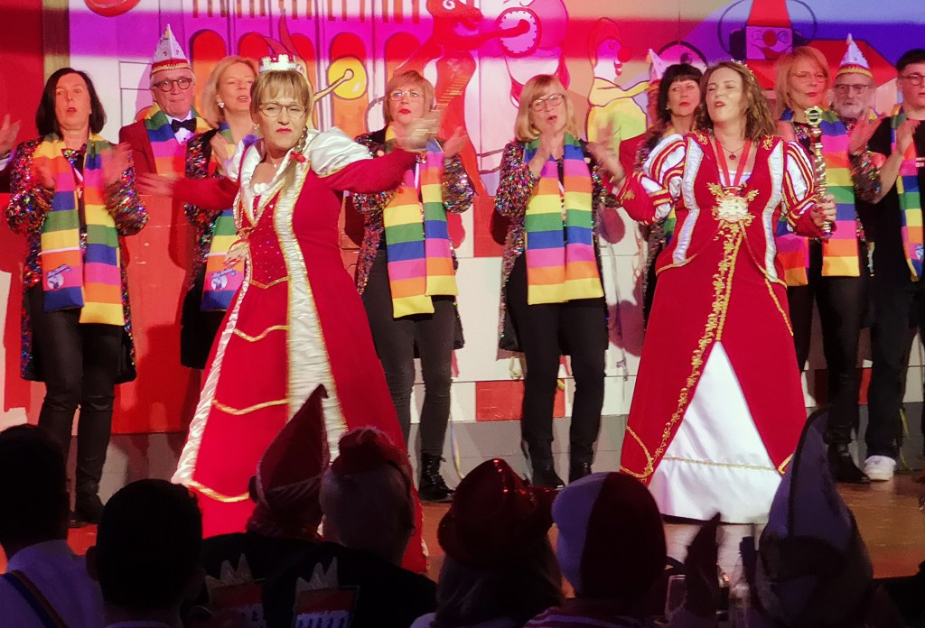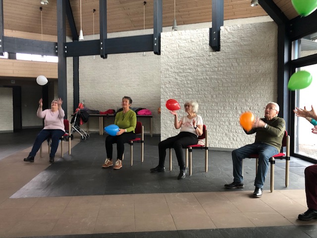 Bei Claudias Sitzgymnastik wird wenig über Karneval gesprochen, aber konzentriert trainiert, allerdings manchmal auch herzhaft gelacht, wenn beispielsweise eine Übung, bei der ein Luftballon im Sitzen mit den Beinen hochgeworfen und gefangen werden soll, partout nicht klappen will.