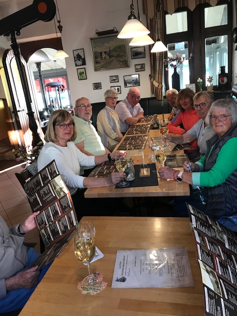 Am 6. Mai starteten wir mit zwölf Teilnehmern um 10 Uhr in Hergarten zu einer Fahrt an die Mosel, wo wir um 12 Uhr im Berkasteler Hof mitten in der Altstadt erwartet wurden. Schon am Nachmittag ging es am Fluss entlang nach Traben-Trabach und an der anderen Mosel-Seite wieder zurück. Die Einkehr in Ürzig bei wunderbarem Apfekuchen und Kaffee sorgte für gute Stimmung während der 50-Kilometer-Fahrt. Nachdem die Fahrräder im Keller gut untergebracht waren, trafen wir uns zum gemeinsamen Abendessen.