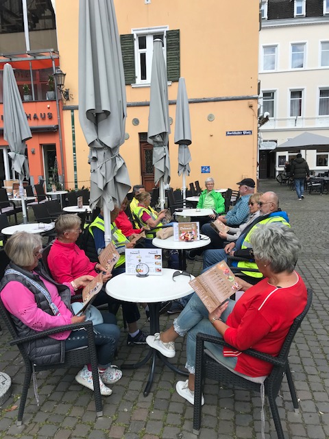 Am Ziel angekommen, tauschten wir bei Kaffee und Kuchen unsere Erlebnisse aus, und dann ging es zurück am anderen Ufer nach Bernkastel-Kues. Hier trafen wir uns auf dem Marktplatz zu einem letzten Eis und zu Gesprächen über diese schöne und erlebnisreiche Moseltour. Anschließend wurden die Fahrräder verladen und es ging gegen 15.30 Uhr in Richtung Heimat. Erfreulicherweise gab es keine Pannen und keine Unfälle und alle sind wieder wohlbehalten zu Hause angekommen.