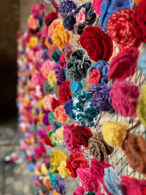 Das Beiratsmitglied der Jungen Alten, Caroline Lauscher, ist auch Künstlerin. Seit Jahren arbeitet sie an einem „Rosenprojekt“, das Gräuel der Vergangenheit aufzeigen und mit einem sozialen Projekt „heilen“ will. Derzeit bereitet sie „Rosen für den Frieden“ in Bonn vor. Auch die Handarbeitsgruppe der „Jungen Alten“ unter Leitung von Karin Breuer hat dafür wieder Rosen gehäkelt.