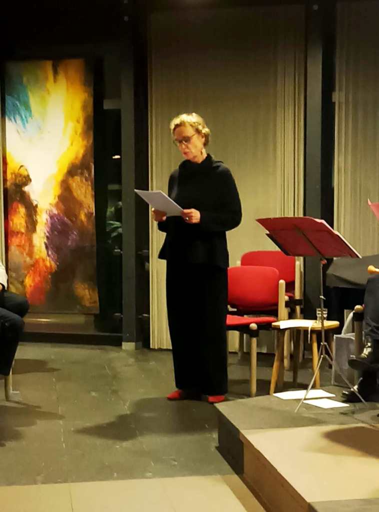 Caroline Lauscher hatte Texte, mal heiter, mal besinnlich, ausgesucht, die so recht zur Adventszeit passten: Reiner Maria Rilke zählte ebenso zu den Autoren wie Heinrich Heine und Joachim Ringelnatz. Dazu spielte das „Consortium Piae“ mit Edith Wirthmann (Sopranflöte), Silke Delhaes (Alt), Susanne Rögele (Bass und Gitarre) sowie Ulrike Schwieren-Höger (Tenor und Gitarre) Weihnachtschoräle von Händel, Bach und Mendelsohn-Bartholdy, aber auch festlich-mittelalterliche Melodien.