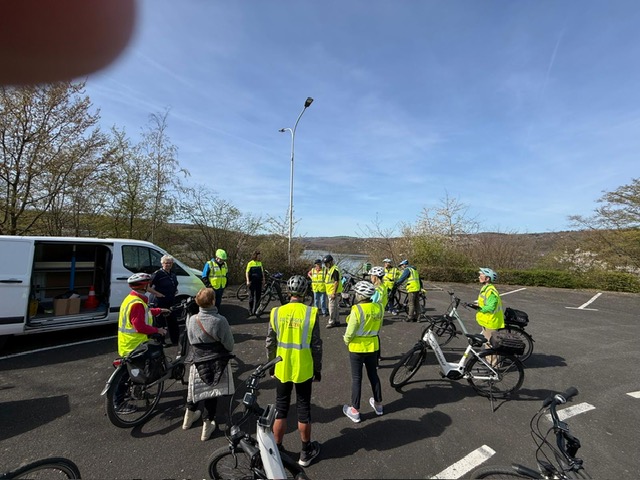 Einn paar Tage zuvor hatte sich die Fahrradgruppe auf dem Parkplatz Schwammenauel fit gemacht. Mit Hilfe der Polizei Düren wurde das E-Bike-Fahren trainiert. Walter Salentin schildert, wie das Training abgelaufen ist: