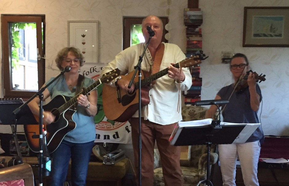 Hubert Jost wusste zwischendurch von Pech und Pannen zu erzählen, die fahrende Sänger erleben. Und manchmal wurde das werte Publikum aufgefordert, zu schunkeln, zu klatschen oder einfach mitzusingen. Spätestens bei „Whiskey in the Jar“, ließ sich das keiner zweimal sagen, zumal Wirtin Katryn Kaufmann auch beim 2. Irischen Abend der „Jungen Alten“ für irisches Bier, Whiskey und Irish Coffee gesorgt hatte. Erst nach drei Stunden durften die Akteure die Bühne verlassen, nicht ohne vorher einige Zugaben gegeben zu haben. ush