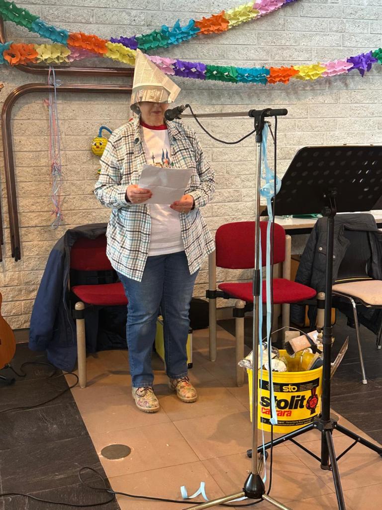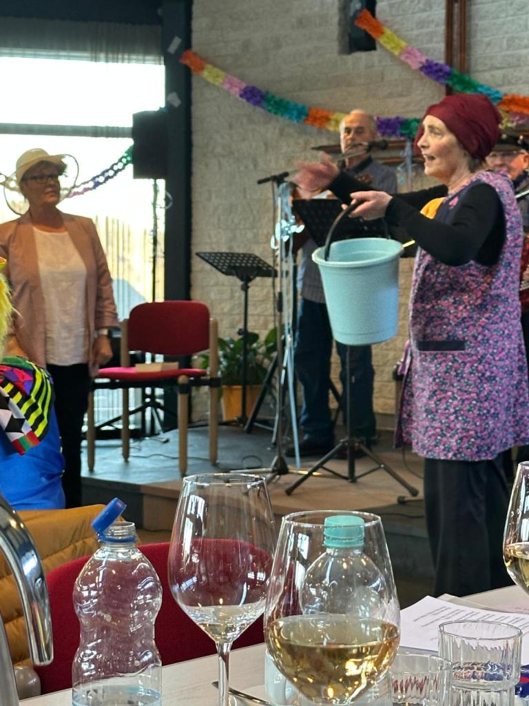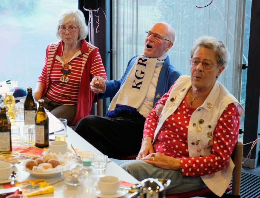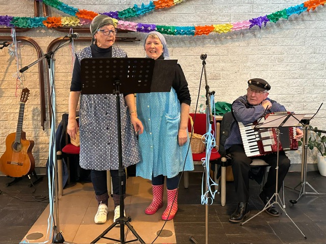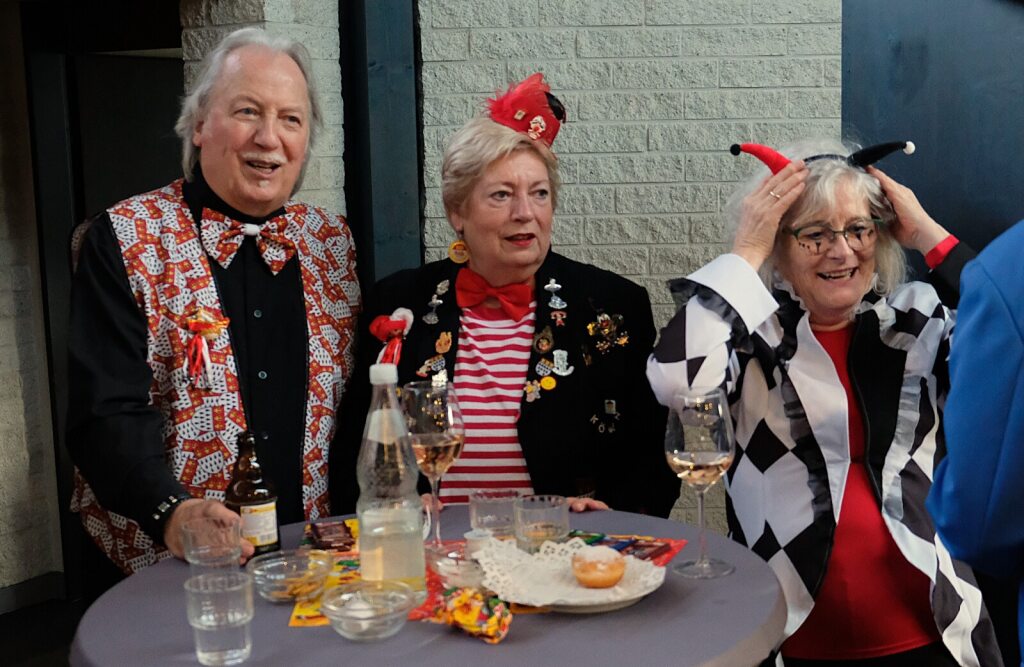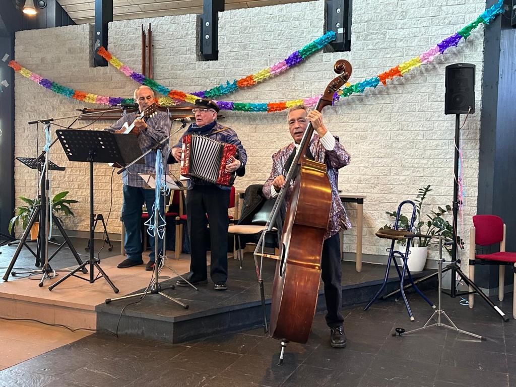 Für musikalische Unterhaltung sorgten Walter Schöller und Dieter Bodes an den Boxen, aber auch Frank Ledig, der in den Anfangsjahren der „Jungen Alten“ bereits mit seinem Akkordeon und Mohamed Bidaoui am Bass zu vielen Karnevalspartys eingeladen hatte. Diesmal brachte er auch den Gitarristen Willi Anderhalfen mit, um für das werte Publikum altvertraute Schunkellieder anzustimmen.
