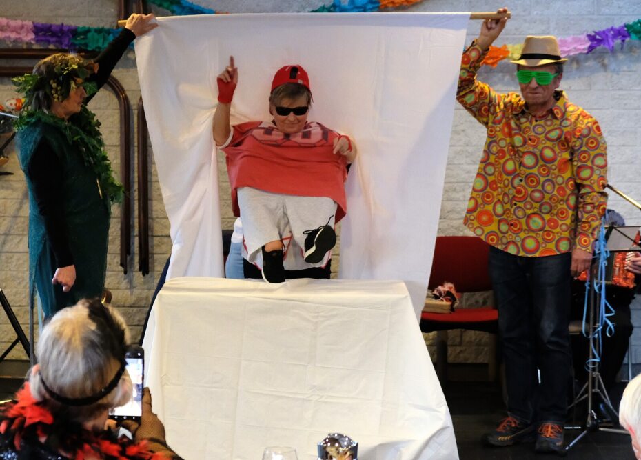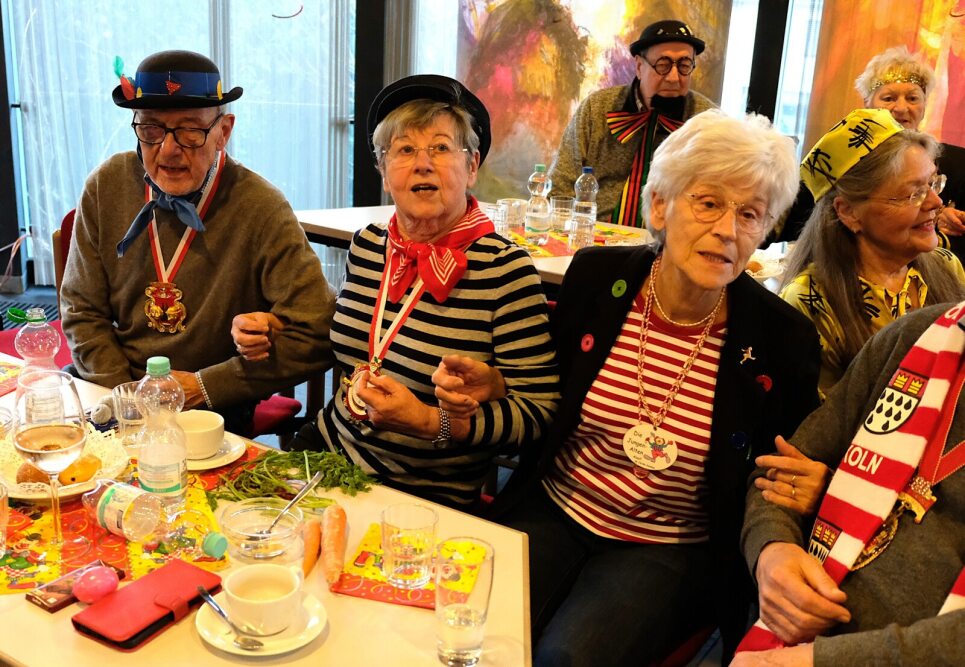 Zum Schluss zogen die „Jungen Alten“ in einer langen Polonäse durch den Saal der EvA und ließen sich von schmissigen Karnevalsliedern auf die Tanzfläche locken. Ein fröhlicher Nachmittag ging mit viel Beifall zu Ende. ush