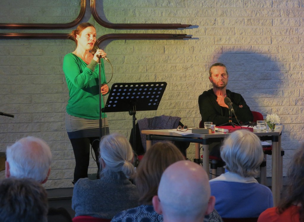 Anne Fink las für die erkrankte Autorin Regine Brühl mit Autor Stephan Falk aus „Kreideherz“.